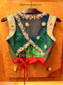 Green Colour Embroidery blouse Back neck hands designs for bridal